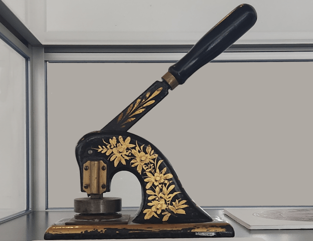 Manual press ‘seal’ machine for the Glenorchy City Council (late 19th early 20th century). Council collection.